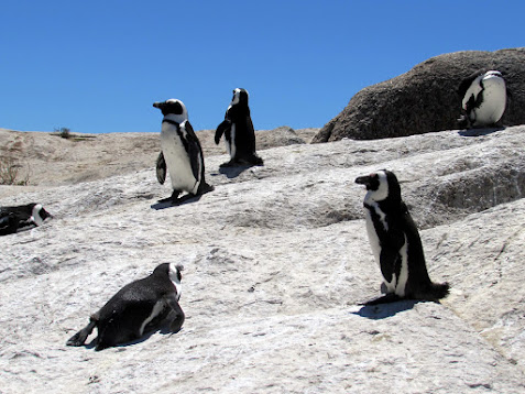 Pinguini in Africa, possibile? Certo, basta allontanarsi di poco dal centro di Cape Town, seguire la strada che porta verso la riserva naturale del Capo fino a Simon's Town. Qui, su una spiaggia bianchissima, bagnata dal più azzurro dei mari, si trova una colonia di buffissimi pinguini che resistono a temperature piuttosto calde. A Boulders si trovano ben 3000 esemplari, discendenti dalla prima coppia che si è stabilita qui nel 1982. dopo di che si può tranquillamente esplorare la zona grazie a passerelle che lambiscono la spiaggia. Pinguini che covano, che prendono il sole, che fanno il bagno...un vero spasso.
